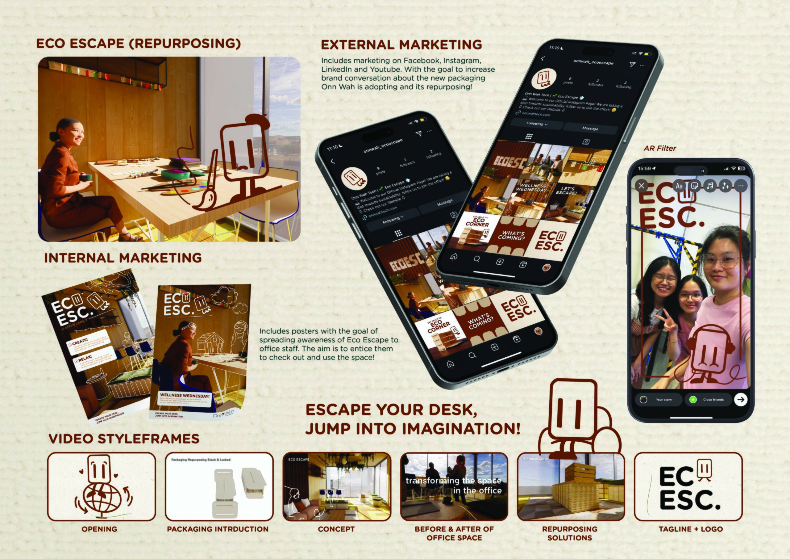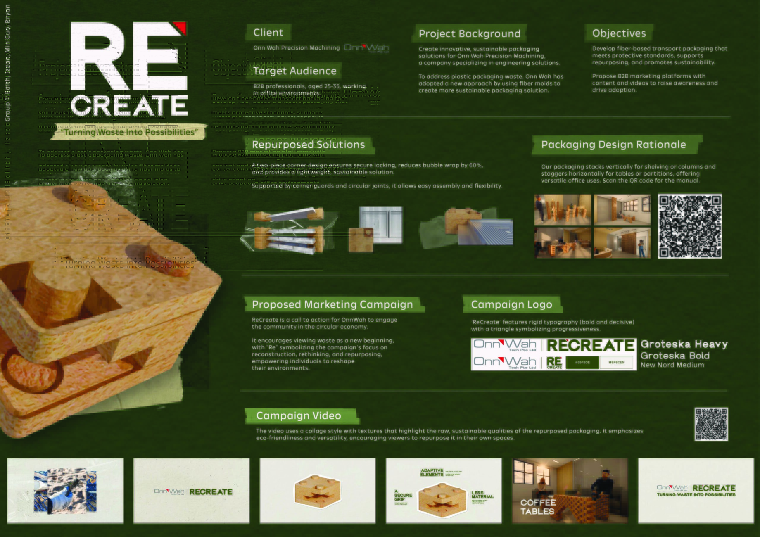 Project 1: Innovative Packaging Solution — Students collaborated with Onn Wah Tech to design sustainable fiber-based packaging, focusing on reusability, user engagement, and reducing waste.