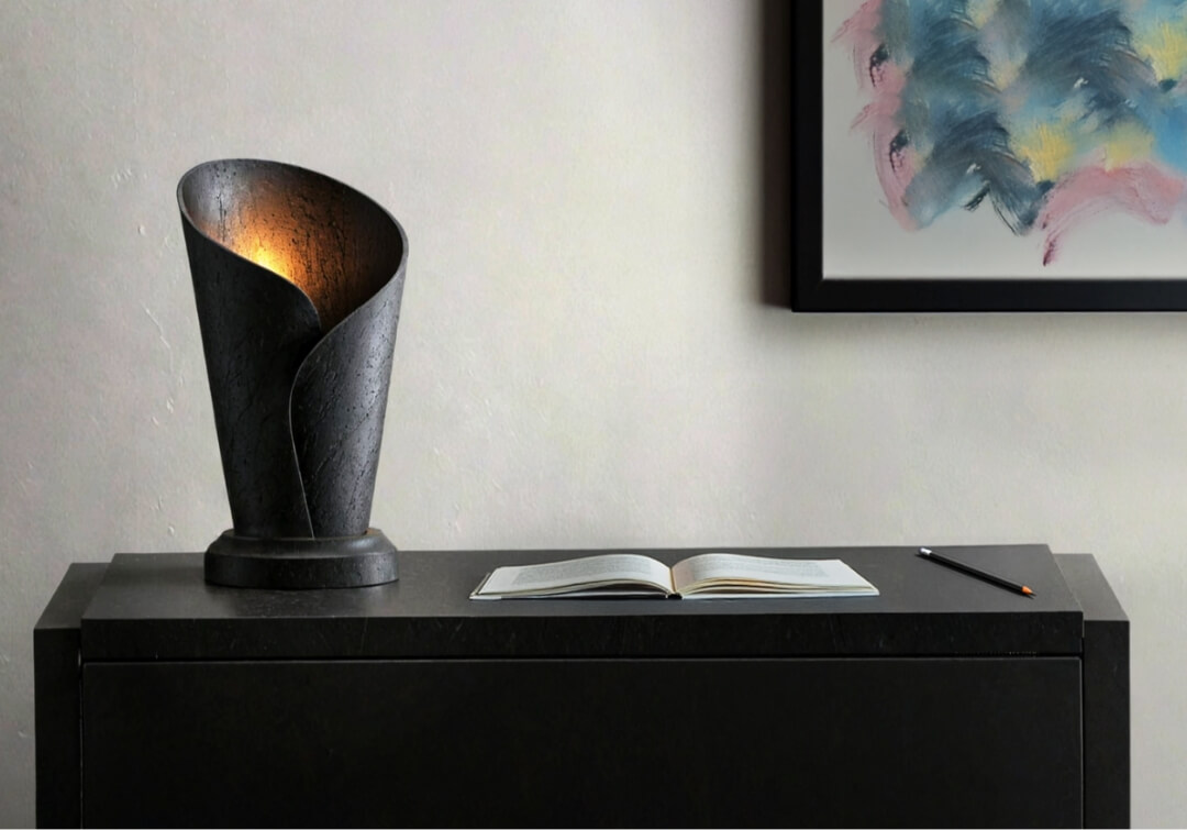 A 3D-printed lamp series exploring AI-driven design, blending digital tools with craftsmanship for organic, innovative forms.
